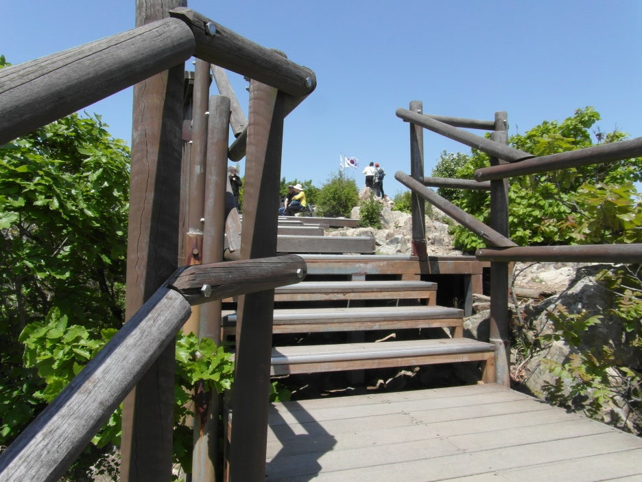 바윗길 등산로가 데크계단설치로 편안히 오를 수 있다.