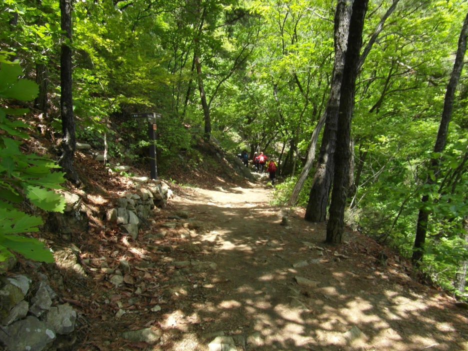 연한 초록빛 나뭇잎의 싱싱한 기운이 마음을 흠뻑 적시는 산행이다.